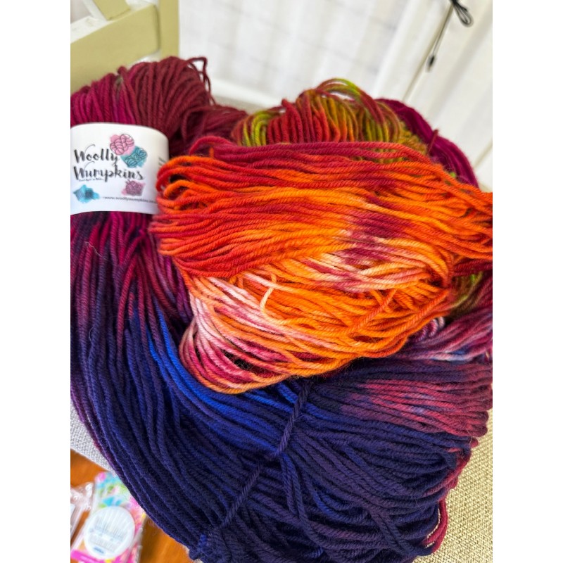 Hand dyed by Michelle in her Tonypandy workshop and displayed at the Lewis Collective on Hannah Street, Porth each hank gives approximately 520 metres per 250g skein. Size 4mm needles recommended.